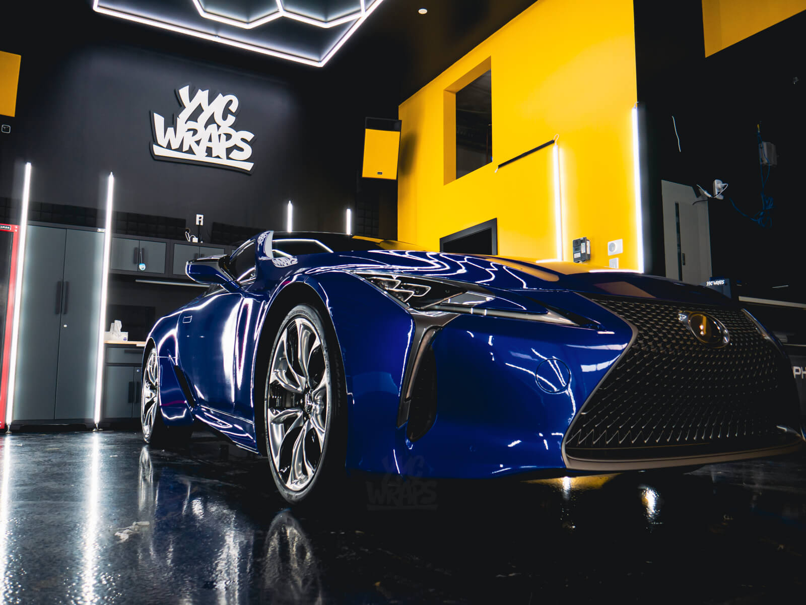 We vinyl wrapped this originally white Lexus LC500 to a 3M Cosmic Gloss Blue Vinyl Wrap and covered up the front with XPEL Ultimate Plus PPF because here in Calgary the conditions and elements will certainly damage the wrap over time. With PPF the vinyl wrap is protected. We also Ceramic Coated the entire vehicle with Cquartz UK 3.0 for a super smooth high gloss finish. This wrap was completed in our secure Calgary Vinyl Wraps and PPF facility in NE Calgary.